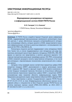 Опубликовано ср, 08/24/2022 - 17:35 пользователем Гость (не проверено) Труды ГПНТБ СО РАН. 1 / 2019 PDF Открыть Научная статья функциональные требования distributed information resources data integration digital repository information retrieval metadata functional requirements распределенные информационные ресурсы интеграция данных цифровой репозиторий поиск информации метаданные ГПНТБ СО РАНДата публикации: 2019-12-11Серия: Труды ГПНТБ СО РАНВыпуск (issue): 1Страницы: 32-38Идентификатор: oai:oai.sorangpntb.elpub.ru:article/20https://proceedings.gpntbsib.ru/jour/article/view/2010.20913/2618-7515-2019-1-32-38 Лицензия: CC BY Источник: proceedings.gpntbsib.ru Доступ ограничен