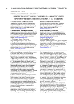 Опубликовано ср, 08/24/2022 - 18:10 пользователем Гость (не проверено) Труды ГПНТБ СО РАН. 2 / 2020 PDF Открыть Научная статья дефицит свободных площадей stock organization stock arranging deficit of vacant space организация фонда размещение фонда ГПНТБ СО РАНДата публикации: 2020-07-04Серия: Труды ГПНТБ СО РАНВыпуск (issue): 2Страницы: 46-54Идентификатор: oai:oai.sorangpntb.elpub.ru:article/446https://proceedings.gpntbsib.ru/jour/article/view/44610.20913/2618-7515-2020-46-54 Лицензия: CC BY Источник: proceedings.gpntbsib.ru В открытом доступе