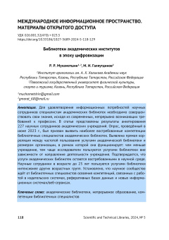 Опубликовано ср, 08/24/2022 - 18:10 пользователем Гость (не проверено) Труды ГПНТБ СО РАН. 3 / 2019 Научная статья экономика знаний librarianship library science interdisciplinary intellectual capital knowledge economics библиотековедение междисциплинарность интеллектуальный капитал ГПНТБ СО РАНДата публикации: 2019-12-11Серия: Труды ГПНТБ СО РАНВыпуск (issue): 3Страницы: 40-45Идентификатор: oai:oai.sorangpntb.elpub.ru:article/13https://proceedings.gpntbsib.ru/jour/article/view/1310.20913/2618-7515-2019-3-40-45 Лицензия: CC BY Источник: proceedings.gpntbsib.ru В открытом доступе