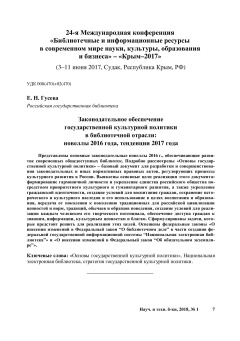 Опубликовано ср, 08/24/2022 - 19:57 пользователем Гость (не проверено) Научные и технические библиотеки. 1 / 2018 PDF Открыть Научная статья стратегия государственной культурной политики The Basic Principles of the State Cultural Policy The National Electronic Library state cultural policy ГПНТБДата публикации: 2018Серия: Научные и технические библиотекиВыпуск (issue): 1Страницы: 7-18Идентификатор: oai:oai.gpntb.elpub.ru:article/262https://ntb.gpntb.ru/jour/article/view/26210.33186/1027-3689-2018-1-7-18 Лицензия: CC BY Источник: ntb.gpntb.ru В открытом доступе