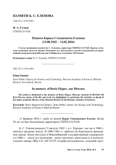 Опубликовано ср, 08/24/2022 - 19:57 пользователем Гость (не проверено) Научные и технические библиотеки. 1 / 2017 PDF Открыть Научная статья Сибирский регион State Public Library for Science and Technology of the Russian Academy of Sciences Siberian Branch Siberian Region ГПНТБ СО РАН ГПНТБДата публикации: 2017Серия: Научные и технические библиотекиВыпуск (issue): 1Страницы: 58-65Идентификатор: oai:oai.gpntb.elpub.ru:article/141https://ntb.gpntb.ru/jour/article/view/14110.33186/1027-3689-2017-1-58-65 Лицензия: CC BY Источник: ntb.gpntb.ru В открытом доступе