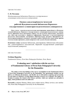 Опубликовано ср, 08/24/2022 - 19:57 пользователем Гость (не проверено) Научные и технические библиотеки. 5 / 2017 PDF Открыть Научная статья Пермский государственный гуманитарно-педагогический университет library users written survey library services user satisfaction Perm State Pedagogical University for the Humanities анкетирование библиотечное обслуживание удовлетворённость пользователей ГПНТБДата публикации: 2017-05-01Серия: Научные и технические библиотекиВыпуск (issue): 5Страницы: 32-35Идентификатор: oai:oai.gpntb.elpub.ru:article/190https://ntb.gpntb.ru/jour/article/view/19010.33186/1027-3689-2017-5-32-35 Лицензия: CC BY Источник: ntb.gpntb.ru В открытом доступе