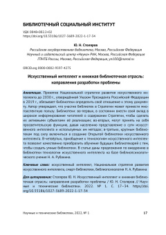 Submitted by Гость (not verified) on Wed, 08/24/2022 - 19:57 Научные и технические библиотеки. 1 / 2022 PDF Открыть Научная статья библиопсихология Н. А. Рубакина National Strategy for Artificial Intellect smart libraries bibliopsychology Nikolas (Nikolay) Aleksandrovich Rubakin Национальная стратегия развития искусственного интеллекта смарт-библиотеки ГПНТБДата публикации: 2022-02-10Серия: Научные и технические библиотекиВыпуск (issue): 1Страницы: 17-34Идентификатор: oai:oai.gpntb.elpub.ru:article/882https://ntb.gpntb.ru/jour/article/view/88210.33186/1027-3689-2022-1-17-34 Лицензия: CC BY Источник: ntb.gpntb.ru В открытом доступе