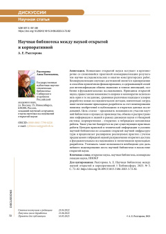 Опубликовано ср, 08/24/2022 - 19:57 пользователем Гость (не проверено) Научные и технические библиотеки. 7 / 2017 Научная статья БЕН РАН library collections collection development model targeted collection development Library for Natural Sciences of the Russian Academy of Sciences фонды модели комплектования точечное комплектование ГПНТБДата публикации: 2017-07-01Серия: Научные и технические библиотекиВыпуск (issue): 7Страницы: 12-19Идентификатор: oai:oai.gpntb.elpub.ru:article/206https://ntb.gpntb.ru/jour/article/view/20610.33186/1027-3689-2017-7-12-19 Лицензия: CC BY Источник: ntb.gpntb.ru В открытом доступе