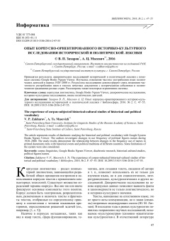Опубликовано чт, 08/25/2022 - 12:44 пользователем Гость (не проверено) Библиосфера. 2 / 2016 PDF Открыть Научная статья Научная статья имена политических деятелей corpus linguistics Google Books Ngram Viewer diachronic research historical-cultural studies political figures names диахронические исследования историко-культурные исследования ГПНТБ СО РАНДата публикации: 2016-06-30Серия: БиблиосфераВыпуск (issue): 2Страницы: 47-55Идентификатор: oai:oai.bibliosfera.elpub.ru:article/68https://www.bibliosphere.ru/jour/article/view/6810.20913/1815-3186-2016-2-47-55 Лицензия: CC BY Источник: www.bibliosphere.ru В открытом доступе