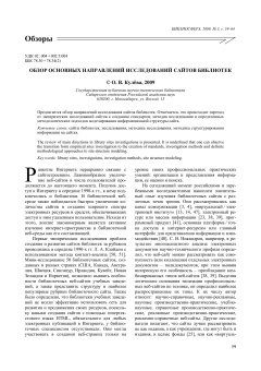 Предлагается обзор направлений исследования сайтов библиотек. Отмечается, что происходит переход от эмпирических исследований сайтов к созданию стандартов, методик исследования и определенных методологических подходов моделирования информационной структуры сайта.