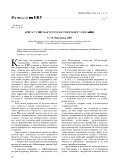 Опубликовано чт, 08/25/2022 - 13:08 пользователем Гость (не проверено) Библиосфера. 2 / 2020 PDF ОткрытьДается характеристика метода «кейс-стадис», его типизация и показаны возможности применения для библиотековедческих исследований. Научная статья Научная статья метод «кейс-стадис» ГПНТБ СО РАНДата публикации: 2020-04-13Серия: БиблиосфераВыпуск (issue): 2Страницы: 36-42Идентификатор: oai:oai.bibliosfera.elpub.ru:article/1511https://www.bibliosphere.ru/jour/article/view/1511 Лицензия: CC BY Источник: www.bibliosphere.ru В открытом доступе