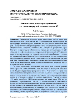 Преобразование документального массива в цифровую форму изменило природу информационной инфраструктуры, поскольку документы в цифровой форме создаются, распространяются, выявляются и доставляются потребителям совершенно иным способом, нежели в эпоху главенства произведений печати как основных носителей информации. Переход к цифровой информационной инфраструктуре привёл к утрате библиотеками роли необходимых посредников на пути документов от автора к читателю, закономерно вытеснив библиотеки на периферию информационной деятельности, обесценив большинство методов и технологий организации документальных массивов, наработанных столетиями. В статье обосновываются объективность и закономерность падения информационной составляющей в работе библиотек и необходимость перехода на оказание услуг, связанных с аналитической обработкой информации. На кардинальное сокращение роли библиотек в системе информационных коммуникаций влияют следующие факторы: сокращение объёмов выпускаемой печатной продукции; снижение содержательной ценности печатной продукции; возможность хранения, распространения, формальной и смысловой обработки цифрового информационного массива и доставки документов пользователю за счёт использования программных продуктов, без применения труда библиотекарей. В совокупности это привело к тому, что осуществляемые ранее библиотеками ручные процессы обработки информации утратили востребованность по объективным причинам. Печатные массивы скудеют количественно и содержательно, а набирающие всё большую мощь и динамику потоки цифровых данных быстрее и эффективнее обрабатываются постоянно совершенствую щимся программным обеспечением. Решение видится в расширении аналитической составляющей деятельности библиотек, что предполагает включение в число основных профессиональных функций библиотекарей обязанностей, связанных со сложными аналитическими процессами: поиском и верификацией фактов, сбором и обработкой статистических и экспериментальных научных данных, составлением аналитических справок, обзоров и отчётов.