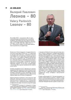 Опубликовано чт, 01/26/2023 - 10:38 пользователем Гость (не проверено) Труды ГПНТБ СО РАН. 4 / 2022 PDF Открыть статья Редакционная 20 октября 2022 г. исполнилось 80 лет научному руководителю Библиотеки Российской академии наук (БАН), доктору педагогических наук, профессору Валерию Павловичу Леонову. Научная статья ГПНТБ СО РАНДата публикации: 2022-12-23Серия: Труды ГПНТБ СО РАНВыпуск (issue): 4Страницы: 98-99Идентификатор: oai:oai.sorangpntb.elpub.ru:article/713https://proceedings.gpntbsib.ru/jour/article/view/713 Лицензия: CC BY Источник: proceedings.gpntbsib.ru В открытом доступе