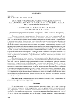 Совершенствование маркетинговой деятельности на рынке органической продукции в сложившихся условиях, несомненно, является значимым аспектом его развития, способствующего формированию новых рыночных подходов ведения деятельности. В настоящее время для большинства потребителей органическая продукция и фермерская продукция являются взаимозаменяемыми понятиями, что в свою очередь свидетельствует об отсутствии сформированных констант восприятия потребителем термина «органическая продукция» и существенным препятствием развития спроса в данном сегменте. С другой стороны, стратегически важным является изучение потребностей потребителей как важного этапа формирования ассортимента предлагаемой на рынке продукции с высокой добавленной стоимостью, и как следствие – основой развития конкурентоспособного сегмента органической продукции. Все вышеперечисленное подразумевает поиск новых маркетинговых подходов и стратегических решений, позволяющих достичь намеченных целей. Цель исследований заключается в поиске актуальных для формирования и развития рынка органической продукции направлений совершенствования маркетинговой деятельности на основе синергии концептуальных подходов в маркетинге, позволяющих сформировать ответственное потребление и стойкий интерес к органической продукции. Исходя из цели основными задачами исследований являются: определение основных принципов развития рынка органической продукции; формирование системы маркетинговых показателей исследования и оценки потенциала развития исследуемого рынка; выявление основных направлений развития маркетинговой деятельности. Результаты работы позволили сформулировать подходы к исследованию и оценке маркетингового потенциала рынка, а также рекомендации по созданию информационной системы как основы стратегического развития всего рынка органической продукции в целом.
