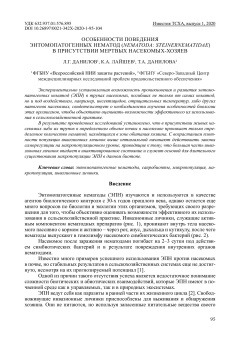 Экспериментально установленная возможность проникновения и развития энтомопатогенных нематод (ЭПН) в трупах насекомых, погибших не только от самих нематод, но и под воздействием, например, инсектицидов, отрицательных температур, либо других патогенов насекомых, свидетельствует о необходимости изучения особенностей биологии этих организмов, чтобы объективно оценивать возможности эффективного их использования в сельскохозяйственной практике. В результате проведенных исследований установлено, что в присутствии живых насекомых либо их трупов в определенном объеме почвы в насекомое проникает только определенное количество нематод, находящихся в зоне обитания хозяина. С возрастанием плотности популяции инвазионных личинок выше оптимальной начинают действовать законы саморегуляции на макропопуляционном уровне, приводящие к тому, что большая часть инвазионных личинок впадает в инактивированное состояние и служит основой для длительного существования макропопуляции ЭПН в данном биотопе.