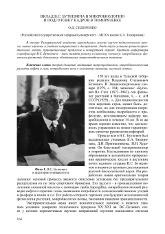 Many scientific and pedagogical schools, new scientific and academic fields and disciplines emerged within the walls of Timiryazev Academy. People of science successfully solved practical problems and fundamental problems in a particular period. Brief information about Professor V.S. Butkevich is a tribute to a clever man with plenty of guts – microbiologist, plant physiologist, biochemist, who possessed encyclopaedic knowledge.