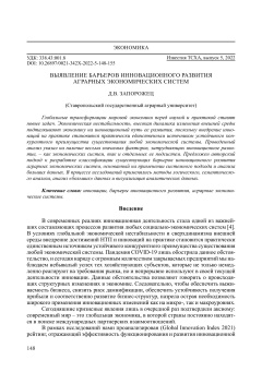 Глобальные трансформации мировой экономики перед наукой и практикой ставят новые задач. Экономическая нестабильность, высокая динамика изменения внешней среды подталкивают экономику на инновационный путь ее развития, поскольку внедрение инноваций на практике становится практически единственным источником устойчивого конкурентного преимущества существования любой экономической системы. Проведенный анализ указал на наличие весьма значимых факторов, затрудняющих инновационное развитие, – как экономических систем, так и отдельных ее подсистем. Предложен авторский подход к разработке классификации существующих барьеров инновационного развития аграрных экономических систем, основанный на применении системного подхода и анализа больших данных. В процессе исследований применялись методы логического, семантического анализа, анализ «больших» данных и визуализация аналитических данных.