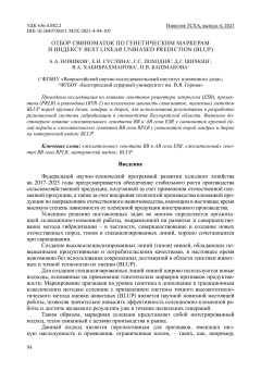 Проведены исследования по влиянию генотипов рецептора эстрогена (ESR), пролактина (PRLR) и рианодина (RYR-1) на племенную ценность свиноматок, оцененных методом BLUP пород крупная белая, ландрас и дюрок, для использования результатов в разработке региональной системы гибридизации в свиноводстве Белгородской области. Выявлено достоверное влияние «желательных» генотипов ВВ и АВ гена ESR у свиноматок крупной белой породы и «желательного» генотипа ВВ гена RPLRу свиноматок пород ландрас и дюрок на материнский индекс BLUP.