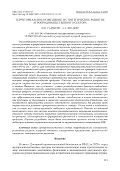 Рассматривается комплексная проблема территориального размещения и стратегического развития агропродовольственного сектора, при должном состоянии которого обеспечивается физическая и экономическая доступность продукции на уровне рациональных норм потребления для каждого гражданина страны. Территориальное планирование призвано задействовать те конкурентные преимущества регионов, которые в большей степени соответствуют задаче «желаемого» развития аграрной сферы. Целью исследований является оценка влияния сложившегося размещения агропродовольственного сектора на результаты его стратегического развития. Информационным ресурсом исследований явилась авторская база данных, характеризующая развитие агропродовольственного сектора субъектов РФ за 2017–2020 гг. Для выявления конкурентных преимуществ регионов используется метод сравнительной оценки уровня показателей (локализация как критерий специализации, продуктивность, себестоимость, доходность, цена реализации как критерий защиты потребителей) между регионами. Логика подхода заключается в том, что «правильная» специализация является следствием сравнительных преимуществ регионов по названным позициям конкурентоспособности продукции. Показано, что сложившееся распределение ресурсов стратегического развития агросектора обусловлено природно-экономическими условиями. Выявлено, что в регионах с лучшим рентообразующим фактором наблюдается также сосредоточенность энергетических мощностей, трудовых и материально-технических ресурсов, основного капитала, инвестиционных вложений. Показано также, что высокая концентрация средств и предметов труда на определенном этапе не ведет к росту эффективности новых инвестиций, а больше способствует усилению капиталоемкости продукции, ее удорожанию и снижению экономической доступности. Определено, что конкурентные преимущества регионов недостаточно задействованы для решения задач стратегического развития агропродовольственного сектора. Сделан вывод о необходимости усиления мер «стимулирующей» поддержки производителей. Новизна исследований заключается в том, что научные аспекты пространственного размещения агропродовольственного сектора дополнены теоретико-методологическими положениями, основанными на принципах сбалансированного формирования физической и экономической доступности продукции. Научные разработки могут быть использованы органами власти в качестве поддержки принятия стратегических решений по территориальному планированию АПК.