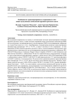 Исследования направлены на оценку и оптимизацию методов транспортировки яичников крупного рогатого скота, а также методов созревания ооцит-кумулюсных комплексов (ОКК) для последующего экстракорпорального оплодотворения (ЭКО) и культивирования эмбрионов до стадии бластоцисты in vitro. Апробированы температурные режимы транспортировки яичников при температуре +4°C и +37,5°C, а также 3 системы in vitro созревания – in vitro maturation (IVM) ооцитов крупного рогатого скота с использованием питательных сред промышленного производства для культивирования предимплантационных эмбрионов: BOIVM (IVF-Bioscience), Continuous Single Culture Complete (CSCM–C) with Gentamicin and HSA (Irvine Scientific) с добавлением 50 мкг/мл хорионического гонадотропина человека и 5 мкг/мл фолликулостимулирующего гормона, а также метод CAPA-IVM (capacitation IVM) с добавлением в среду CSCM–C1мМ N6,2ʹ-O-дибутириладенозин 3′,5′-цикломонофосфата и 0,5мМ 3-изобутил-1-метилксантина. По результатам сравнения режима транспортировки при температуре +4°C и +37,5°C были получены сопоставимые результаты. Уровень дозревания ооцитов методом CAPA-IVM на среде CSCM–C составил 52,4%, уровень формирования бластоцист – 14,8%, что сопоставимо с результатами контрольной группы на среде, разработанной для созревания, оплодотворения и культивирования эмбрионов крупного рогатого скота: BO-IVM/BO-IVF/BO-IVC (IVF-Bioscience) – 36,2 и 18,8% соответственно. Таким образом, метод CAPA-IVM, по результатам наших исследований, представляется перспективным для использования во вспомогательных репродуктивных технологиях крупного рогатого скота.