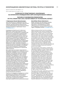 Submitted by Гость (not verified) on Wed, 08/24/2022 - 18:10FEATURES OF INFORMATION PRESENTATION ON THE LITERARY AND LOCAL HISTORY WEBSITE OF THE MUNICIPAL DISTRICT
