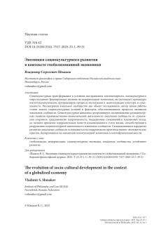 Эволюция социокультурного развития в контексте глобализованной экономики