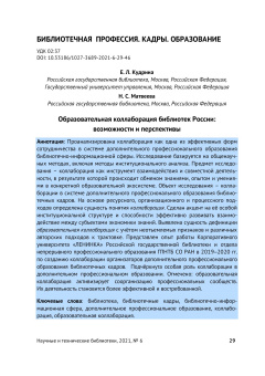 Опубликовано пт, 06/06/2025 - 16:38 пользователем Гость (не проверено)В статье поднимаются проблемы социального партнёрства вузов культуры и школьных библиотек. Авторы, рассмотрев основные работы по теме, указывают на её значимость и недостаточное количество исследований в данной области. На примере кафедры библиотечно-информационных ресурсов Восточно-Сибирского государственного института культуры раскрываются траектории взаимодействия с библиотеками средних образовательных школ (СОШ) региона. Анализируется кадровый состав школьных библиотек Бурятии, выявляются сложности в его формировании.