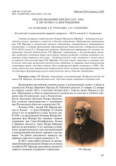 Опубликовано вт, 07/09/2024 - 16:45 пользователем Гость (не проверено)Статья посвящена деятельности Рихарда Ивановича Шредера – выдающегося российского ученого, практика и педагога в области садоводства. Представлена выдающаяся роль Р.И. Шредера в становлении научного садоводства, овощеводства и декоративного садоводства, в создании фундамента образовательной деятельности в Петровской (ныне РГАУ-МСХА имени К.А. Тимирязева) академии. Представлена информация об основных направлениях научной деятельности Р.И.