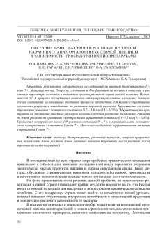 Submitted by Гость (not verified) on Tue, 07/09/2024 - 16:45The article presents the results of laboratory studies on the effect of biopreparations Humate 7+, Growth Matrix, Ecorost, Azotovite and Phosphatovite on the sowing qualities and growth parameters of terrestrial and underground plant organs of the winter wheat variety Nemchinovskaya 57. The work revealed the stimulating effect of the studied biological compounds on the initial growth processes of seedlings. A significant growth-stimulating effect on root system development was observed. The excess in the root length compared to the control was 0.7–21.0 mm (102–145%).