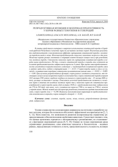 Репродуктивная функция и молочная продуктивность у коров разных генотипов и генераций