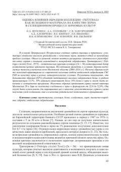 Связь элементов структуры колоса с продуктивностью растений образцов × Trititrigia cziczinii Tzvel
