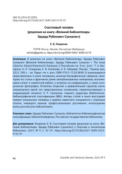 Опубликовано вт, 08/05/2025 - 12:38 пользователем Гость (не проверено)Статья посвящена памяти известного отечественного историка библиотечного дела Михаила Николаевича Глазкова. Обозначены некоторые этапы его жизни и профессионального роста, проанализированы подходы к изучению исторического контента документов. Отмечены научная корректность текстов Михаила Николаевича, глубокое знание многочисленных архивных источников, образность и живость изложения материала. Обращается внимание на то, что значительная часть его научных работ посвящена малоизвестным и малоизученным проблемам истории библиотечного дела нашей страны.