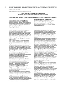 КУЛЬТУРНО-ДОСУГОВЫЕ МЕРОПРИЯТИЯ УНИВЕРСАЛЬНЫХ НАУЧНЫХ БИБЛИОТЕК СИБИРИ Опубликовано ср, 08/24/2022 - 18:10 пользователем Гость (не проверено) PDF Открыть
