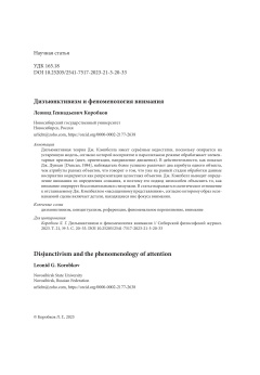 Submitted by Гость (not verified) on Thu, 09/05/2024 - 00:19J. Campbell`s disjunctivist theory of perception is based on an outdated model of attention, which maintains that the focus of attention is analogous to the beam of a spotlight. Meanwhile, some studies challenge this view and suggests that attentional selection can be object-based. The narrow target of this article consists in clarifying what is at stake between attention-first and consciousness-first strategies. The latter assumes that one could explain what attention is by specifying how some proper subset of the conscious field comes to be foregrounded.
