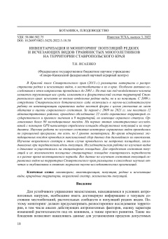 Инвентаризация и мониторинг популяций редких и исчезающих видов травянистых многолетников на территории Ставропольского края