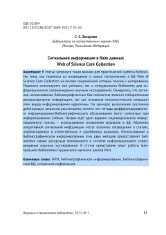 Сигнальная информация в базе данных Web of Science Core Collection Опубликовано ср, 08/24/2022 - 19:57 пользователем Гость (не проверено) PDF Открыть