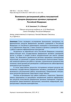 Статья посвящена исследованию функционала электронных информационных ресурсов федеральных архивных учреждений в Российской Федерации: их способности удовлетворить имеющиеся и возникающие запросы в современном обществе, а также готовности архивных учреждений страны к работе в едином информационном пространстве. Исторически на европейской части Российской Федерации сконцентрирована большая часть государственных федеральных архивных учреждений, доступ в которые и сегодня остаётся затруднительным для многих граждан страны.