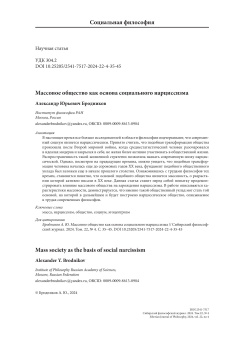 Опубликовано чт, 02/05/2026 - 17:38 пользователем Гость (не проверено)В настоящее время все больше исследователей в области философии подчеркивают, что современный социум является нарциссическим. Принято считать, что подобная трансформация общества произошла после Второй мировой войны, когда среднестатистический человек разочаровался в идеалах модерна и закрылся в себе, не желая более активно участвовать в общественной жизни. Распространенность такой жизненной стратегии позволила назвать современную эпоху нарциссической.
