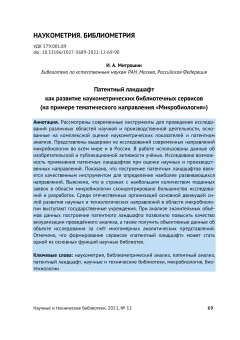 The patent landscape for developing scientometric library services (as exemplified by the discipline of Microbiology) Submitted by Гость (not verified) on Wed, 08/24/2022 - 19:57 PDF Открыть