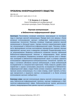 Scientific communication in library and information sphere Submitted by Гость (not verified) on Wed, 08/24/2022 - 19:57 PDF Открыть