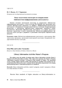 Опыт подготовки магистров по направлению «Библиотечно-информационная деятельность» Опубликовано ср, 08/24/2022 - 19:57 пользователем Гость (не проверено) PDF Открыть