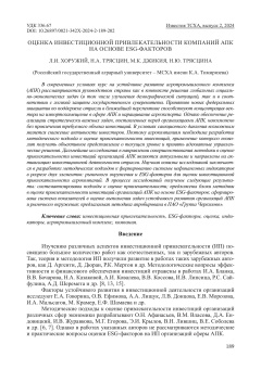 Оценка инвестиционной привлекательности компаний АПК на основе ESG-факторов