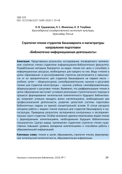Стратегия чтения студентов бакалавриата и магистратуры направления подготовки «Библиотечно-информационная деятельность» Авторы: Грушевская Н.В. Финогина Л.С. Голубева Н.Л. PDF Открыть