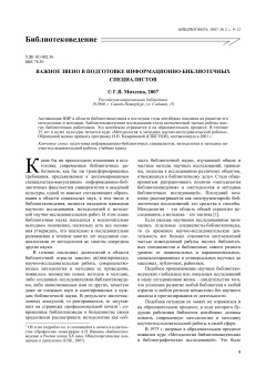 ВАЖНОЕ ЗВЕНО В ПОДГОТОВКЕ ИНФОРМАЦИОННО-БИБЛИОТЕЧНЫХ СПЕЦИАЛИСТОВ