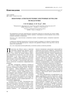 Некоторые аспекты изучения электронных журналов по педагогике Опубликовано чт, 08/25/2022 - 03:08 пользователем Гость (не проверено) PDF Открыть