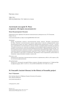 Античный глоссарий М. Фуко в проекте «История сексуальности»