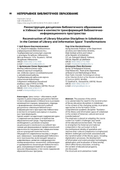 Реконструкция дисциплин библиотечного образования в Узбекистане в контексте трансформаций библиотечно-информационного пространства
