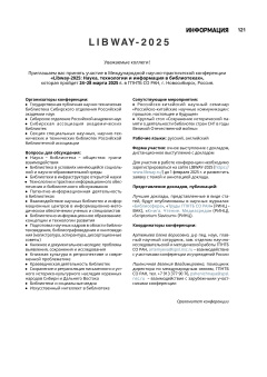 Международная научно-практическая конференция «Наука, технологии и информация в библиотеках (Libway-2024)» Опубликовано чт, 01/25/2024 - 18:08 пользователем Гость (не проверено) PDF Открыть.