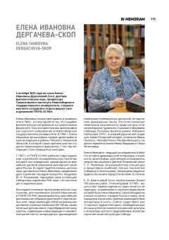 5 октября 2022 года не стало Елены Ивановны Дергачевой-Скоп, доктора филологических наук, профессора Гуманитарного института Новосибирского государственного университета, старшего научного сотрудника отдела редких книг и рукописей ГПНТБ СО РАН.