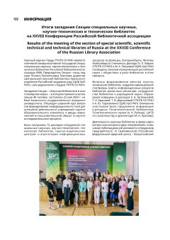 Итоги заседания Секции специальных научных, научно-технических и технических библиотек на XXVIII Конференции Российской библиотечной ассоциации