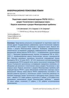 Подготовка новой эталонной версии ГРНТИ 2025 г.: раздел Технические и прикладные науки. Отрасли экономики и раздел Межотраслевые проблемы
